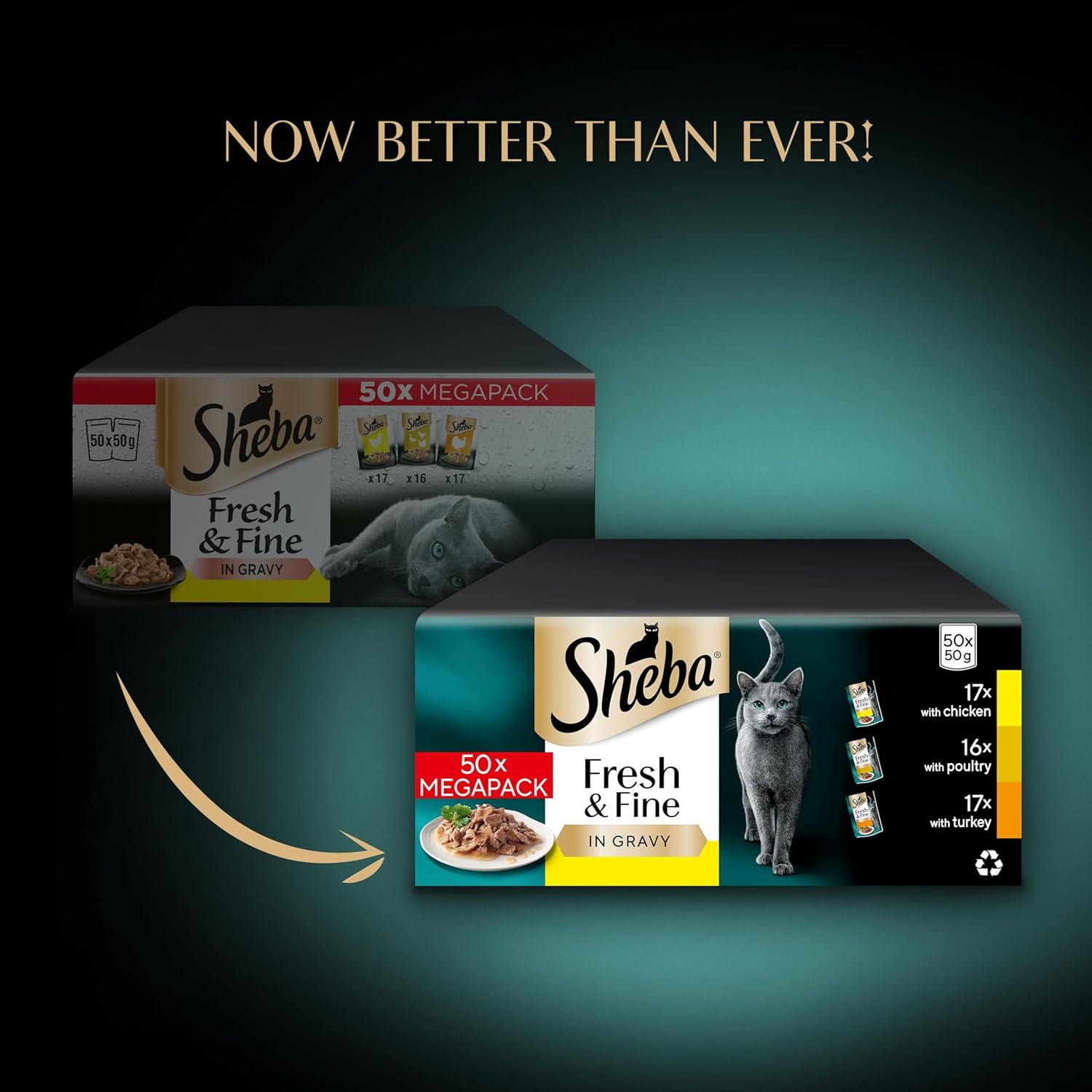 • Our Sheba cat food pouches have a 100 percent Recyclable outer wrap, helping preserve our environment