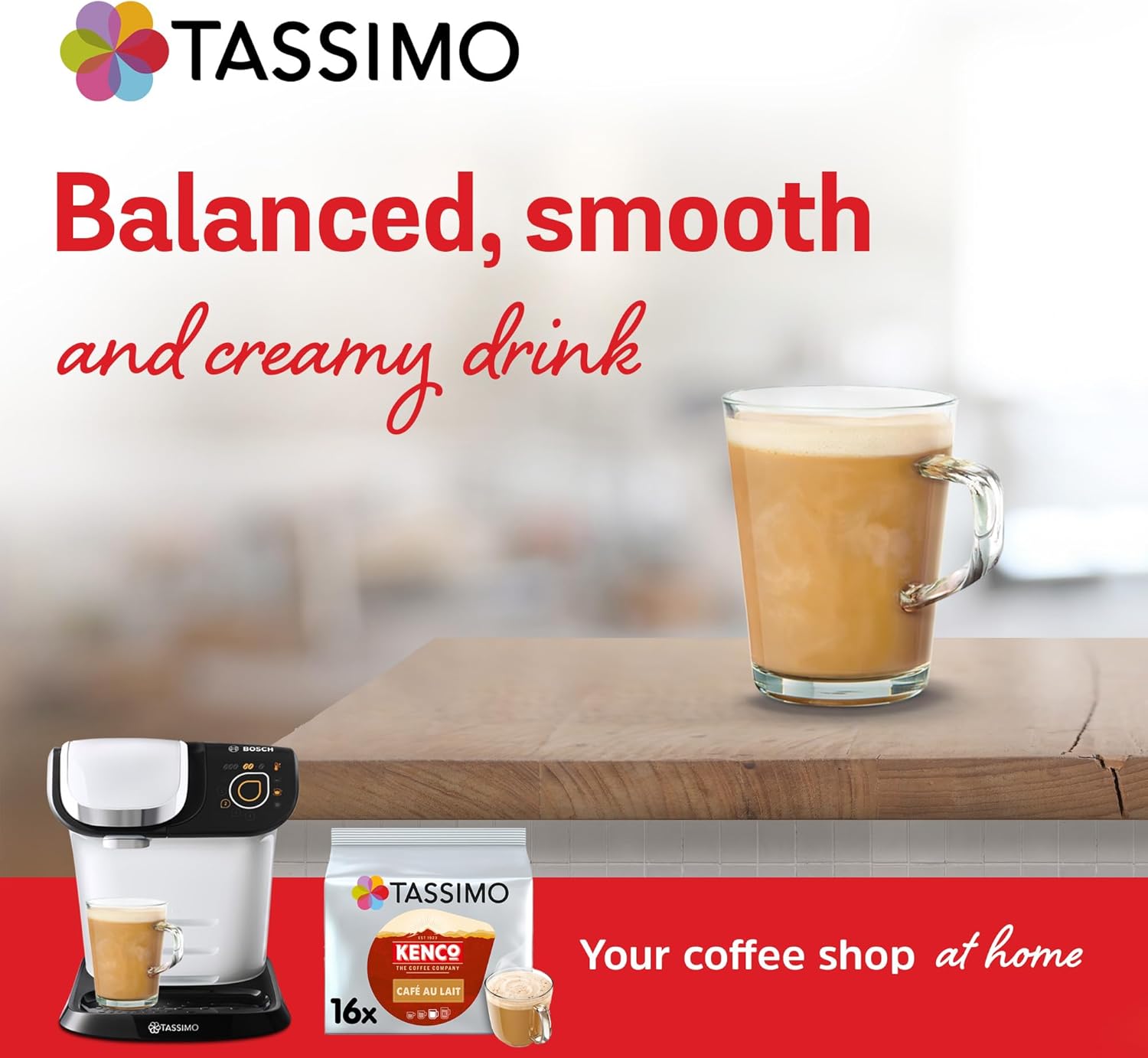 - DISCOVER NEW TASSIMO KENCO CAFE AU LAIT, a balanced, smooth and creamy drink with subtle caramel notes. Indulge in a little me-time with the perfect everyday drink.