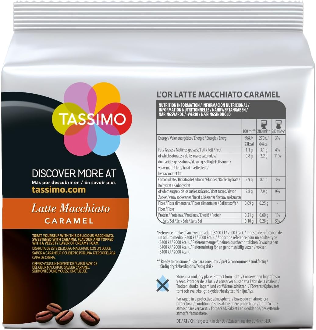 ☕ Product Description — Tassimo L’OR Caramel Latte Macchiato Coffee Pods x8 (Pack of 5, Total 40 Drinks)